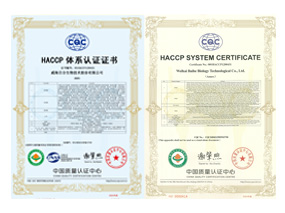 公司已通過包括 ISO9001 質(zhì)量管理體系認(rèn)證、ISO14001 環(huán)境管理體系認(rèn)證、ISO45001 職業(yè)健康安全管理體系認(rèn)證、知識產(chǎn)權(quán)管理體系認(rèn)證、HACCP體系認(rèn)證、美國NSF工廠認(rèn)證、英國BRCGS認(rèn)證、SEDEX認(rèn)證、歐盟水產(chǎn)品注冊、FDA注冊、加拿大 FSRN注冊、美國UL認(rèn)證、清真食品認(rèn)證、能源管理體系認(rèn)證在內(nèi)的 14項(xiàng)資格認(rèn)證,是行業(yè)內(nèi)取得國內(nèi)外認(rèn)證最多的企業(yè)之一。