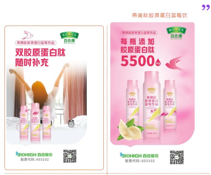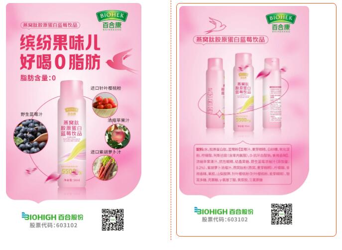 百合股份帶來(lái)了自己研發(fā)的一系列新品,包括燕窩肽膠原蛋白藍(lán)莓飲品,以及蘆薈酵素西梅飲。