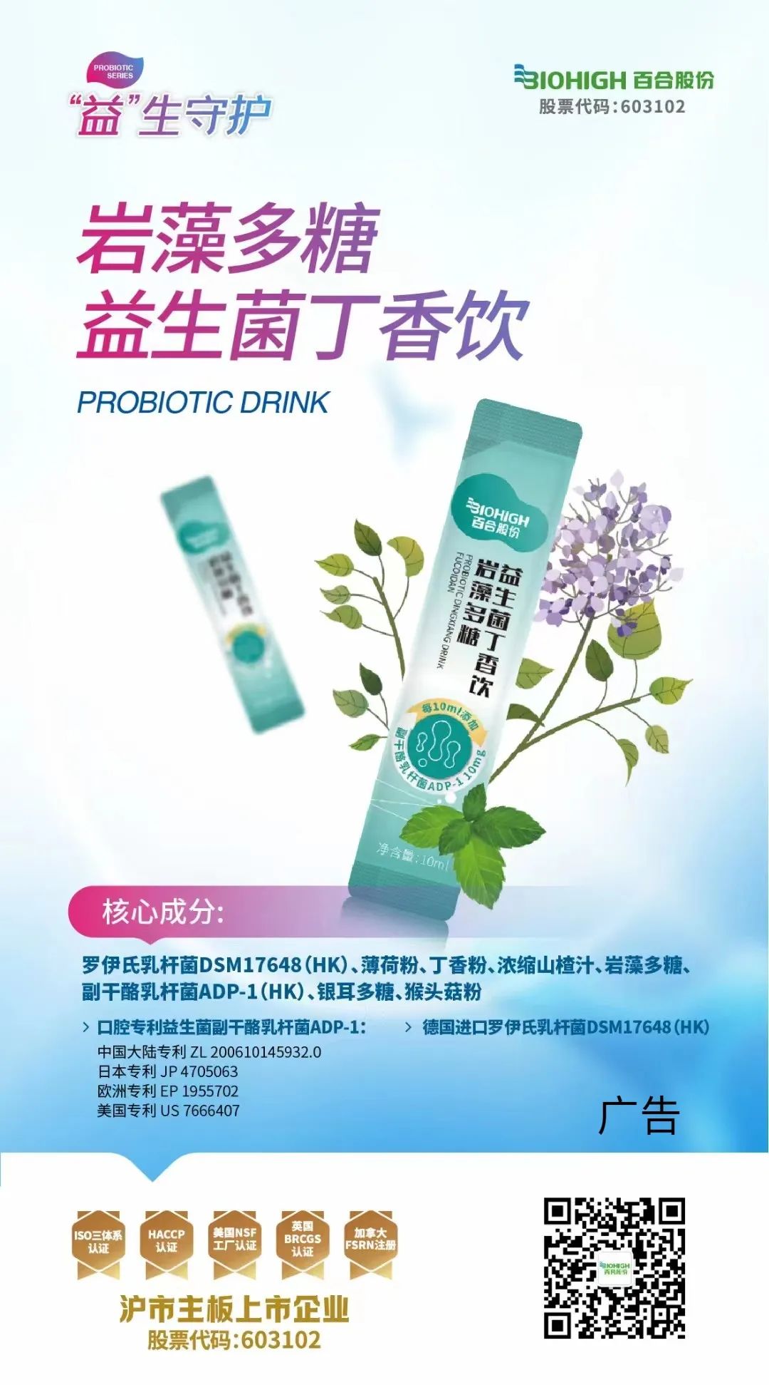 本次展會(huì),百合股份帶來的益生菌滴飲,創(chuàng)新液體劑型,滴飲式的服用方法,微囊包埋+MCT油膜技術(shù)保證800億CFU/瓶的菌株活性讓不少客戶眼前一亮;添加了巖藻多糖、丁香粉、薄荷粉、口腔專利益生菌的巖藻多糖益生菌丁香飲也收獲現(xiàn)場客戶的高度評價(jià)。