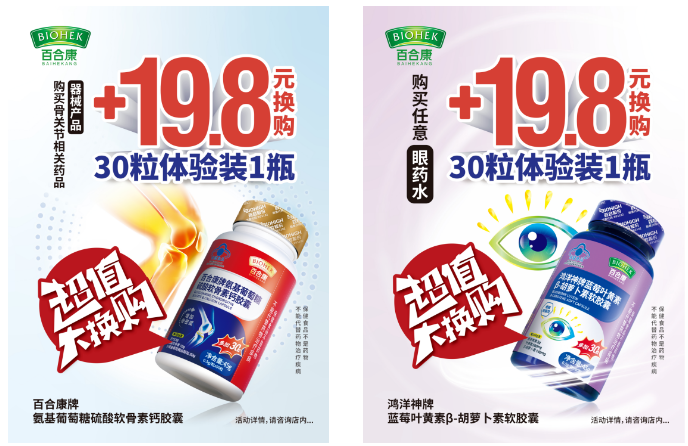 本次活動精選氨糖、藍莓葉黃素、蘆薈軟膠囊等3款優(yōu)質(zhì)大單品作為引流利器,百合股份與全億健康強勢聯(lián)手,采用平價多銷的模式,共同參與啟動,活動預熱、門店打造,引流活動,銷售數(shù)據(jù)跟進等,打造藥店增量爆品。
