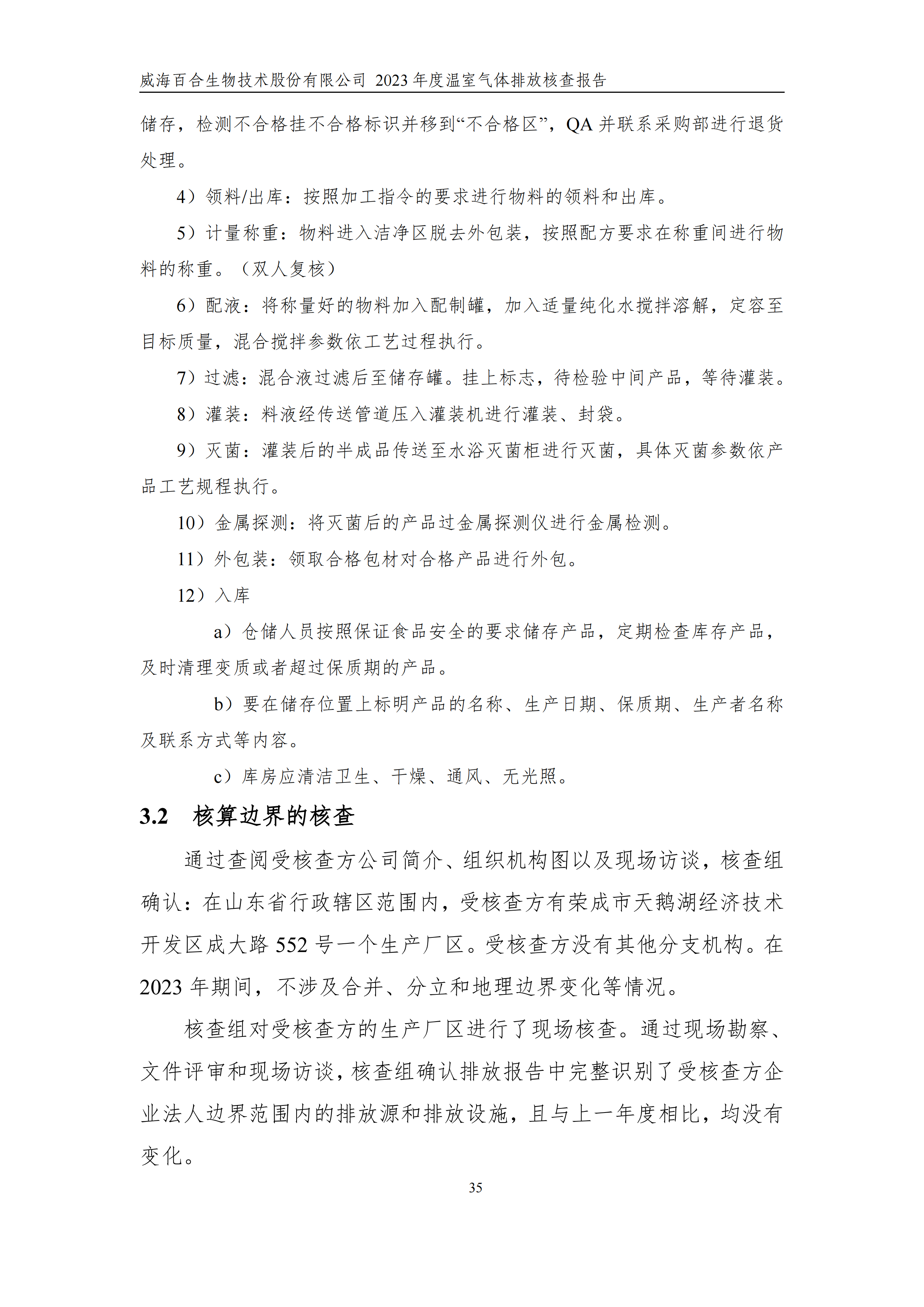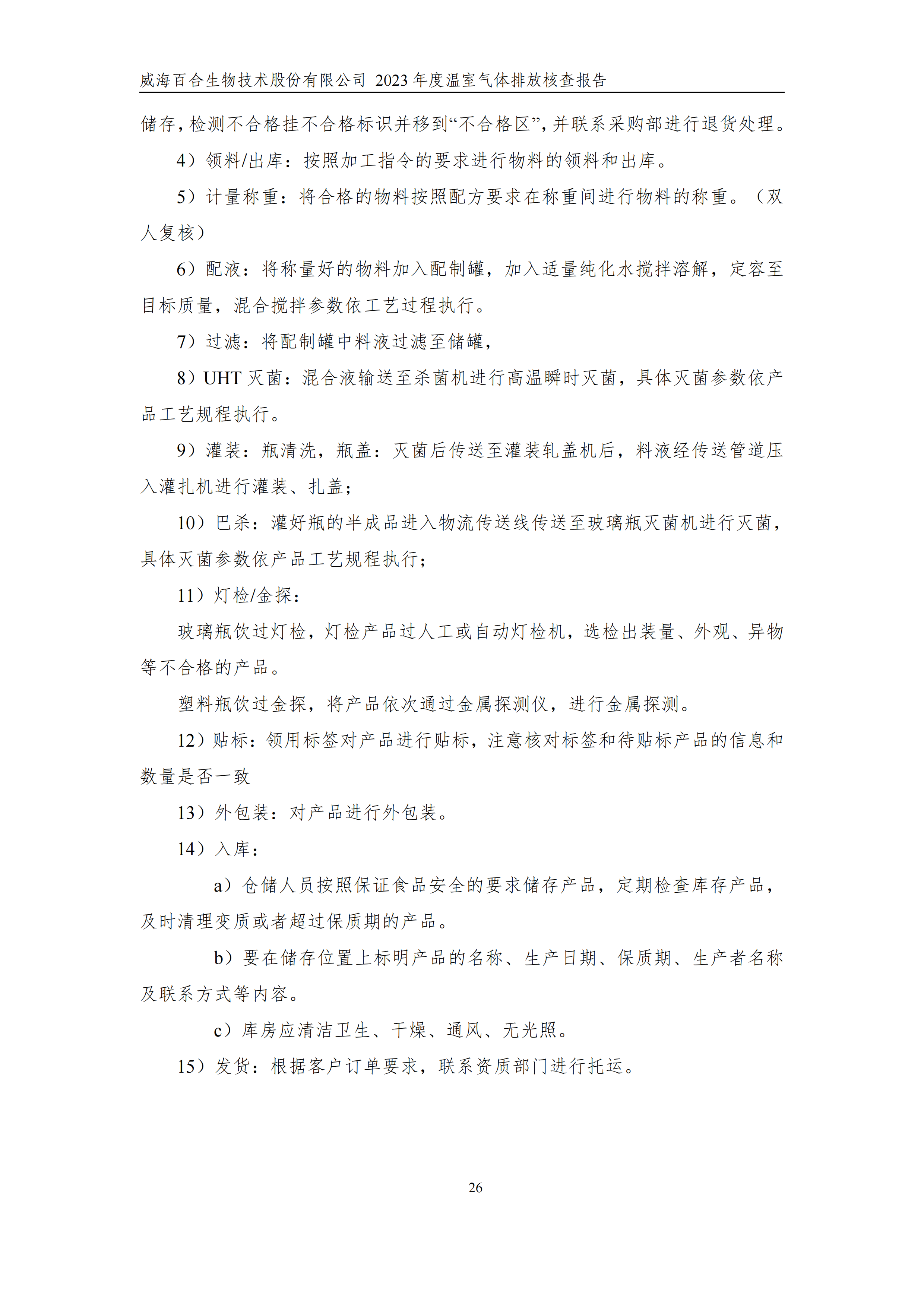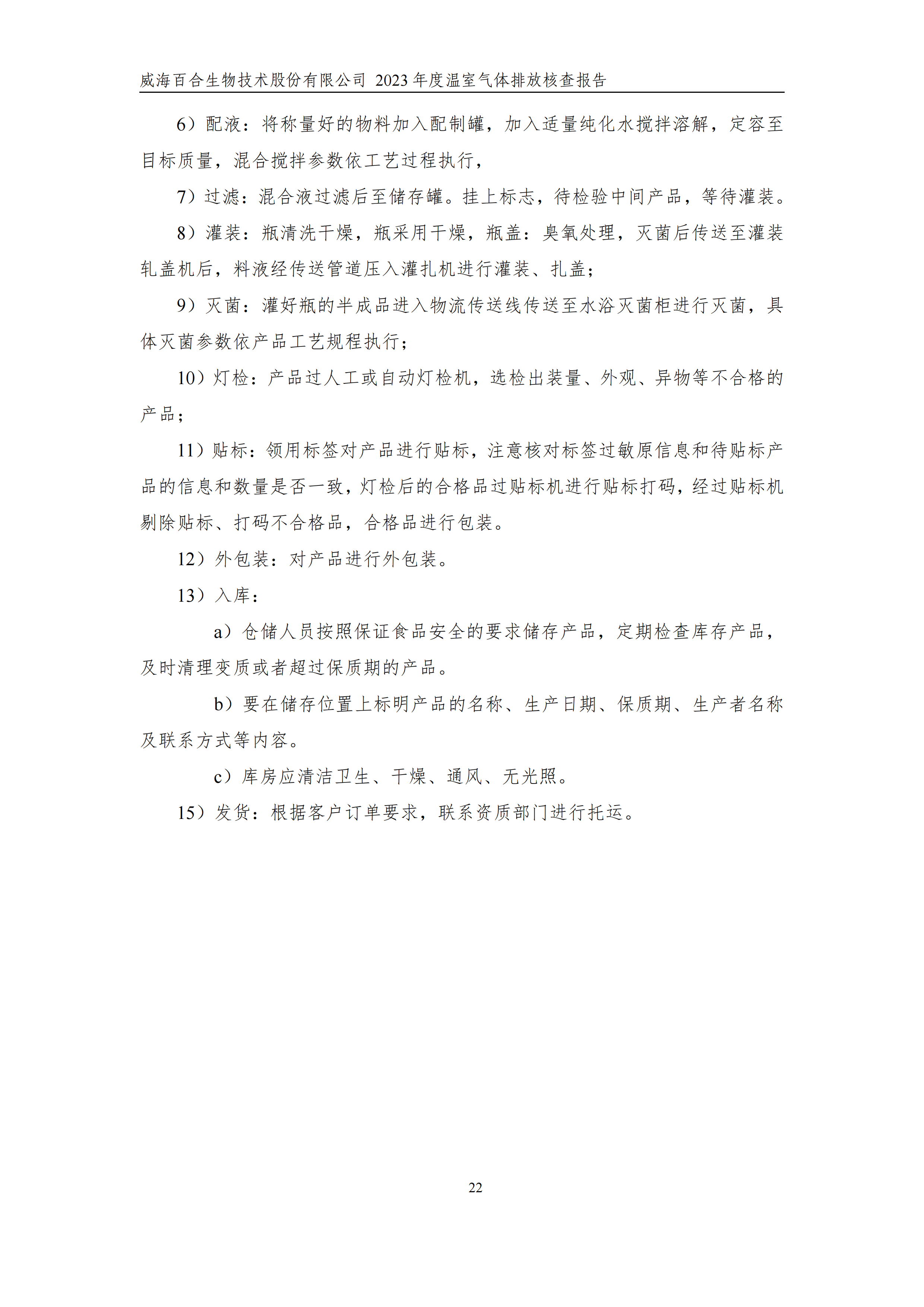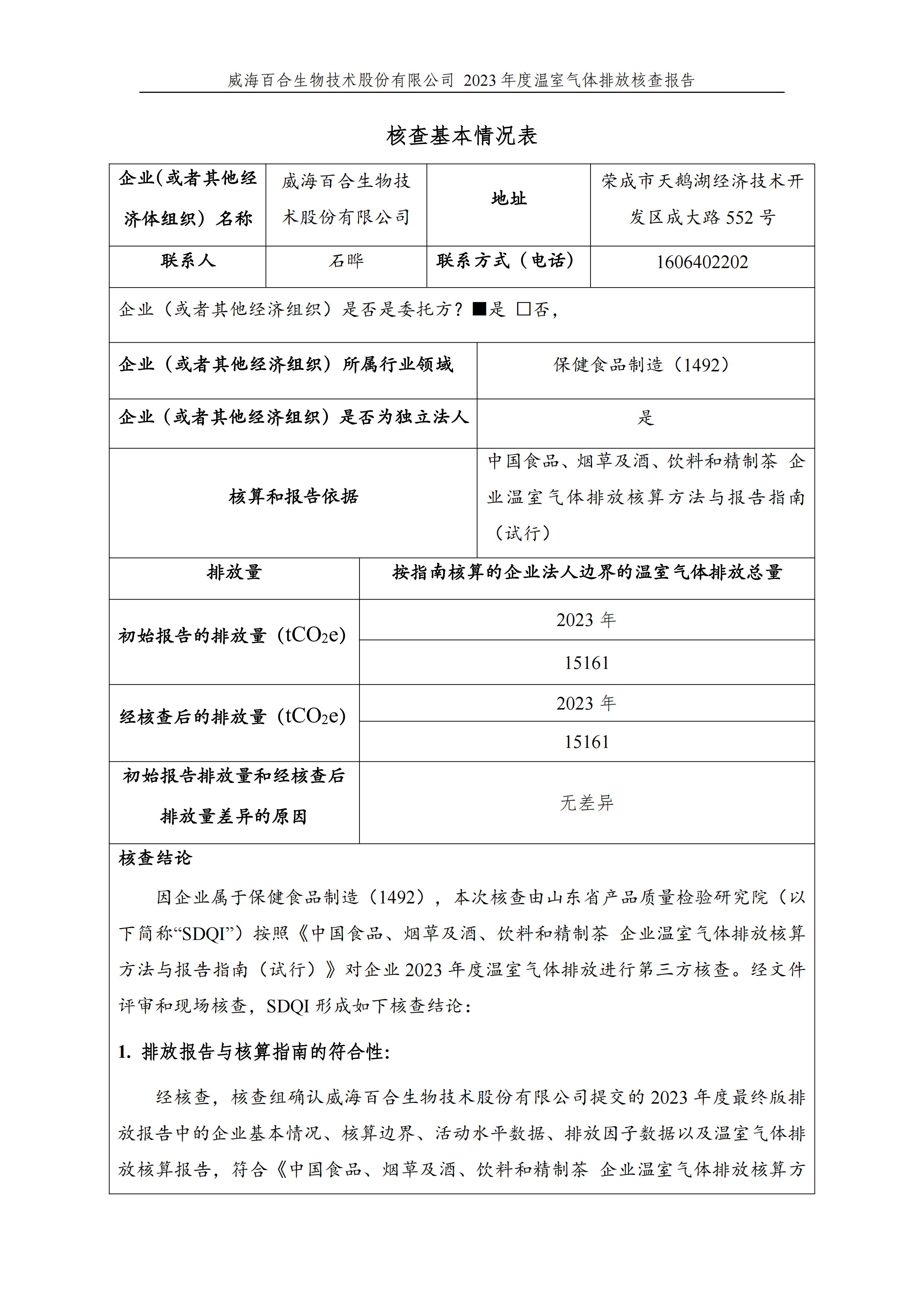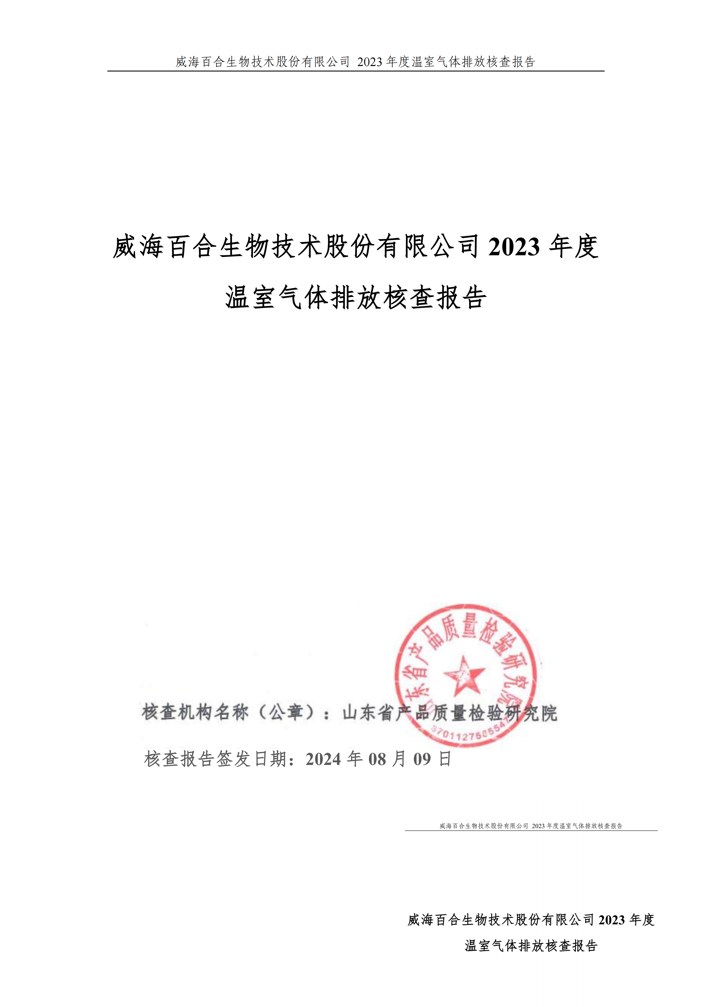 威海百合生物技術(shù)股份有限公司2023年度溫室氣體排放核查報(bào)告