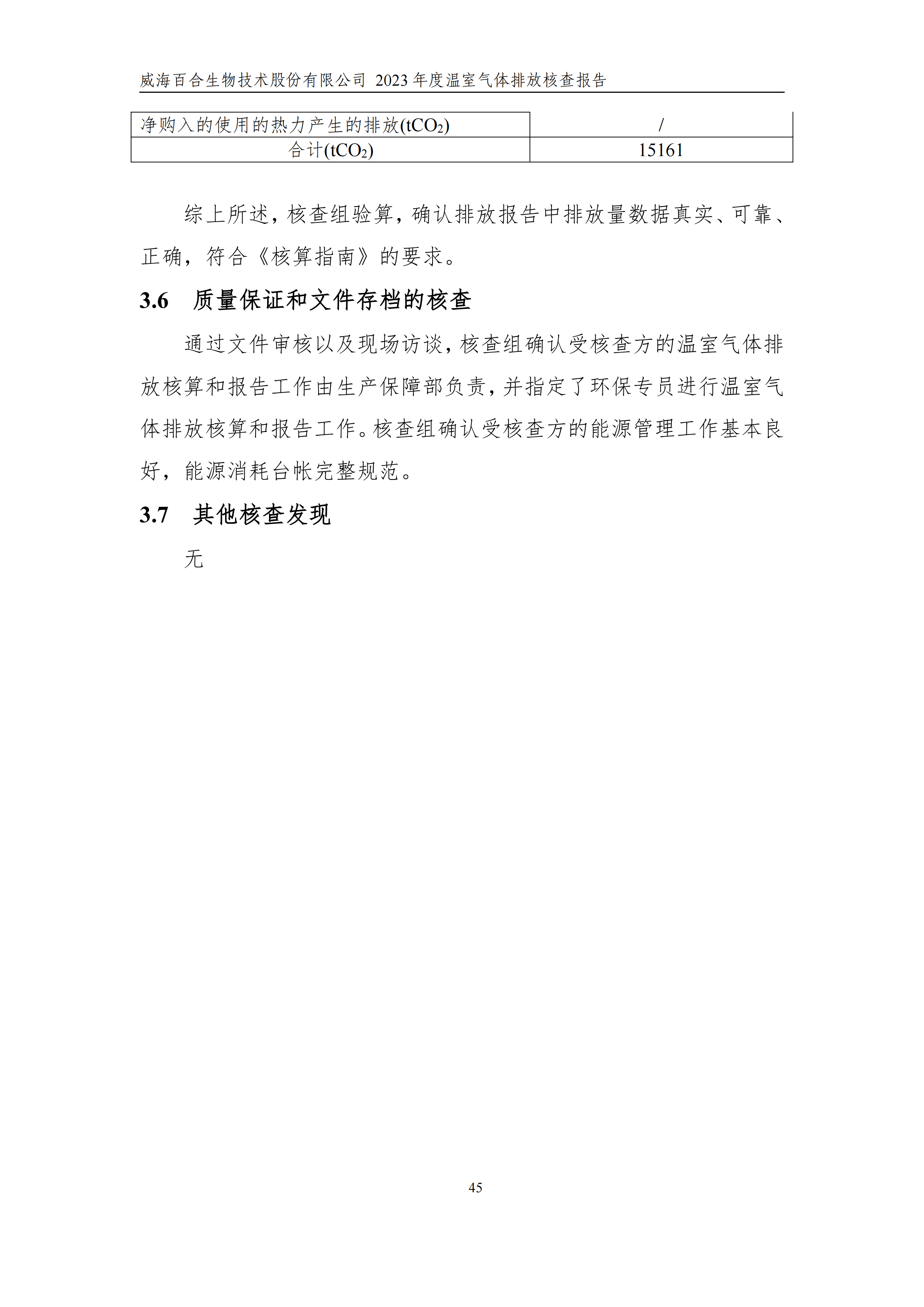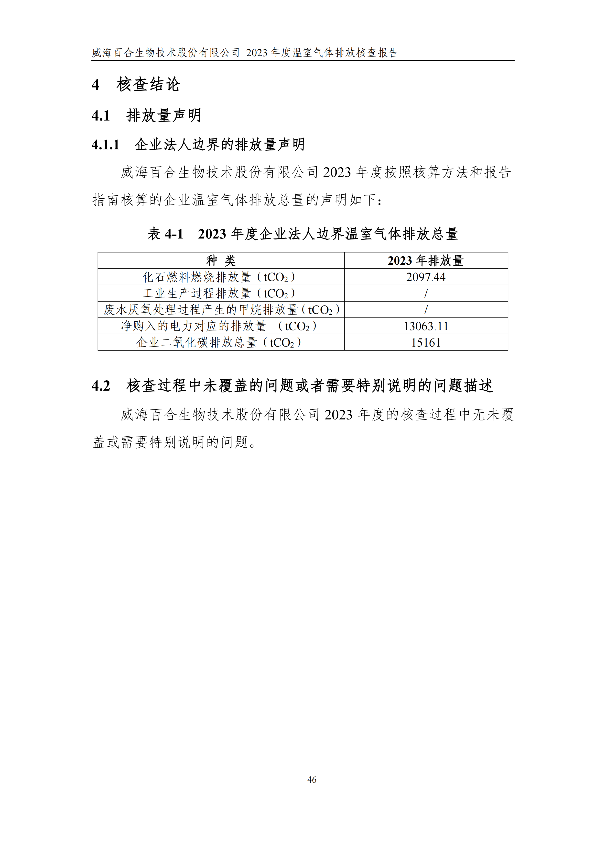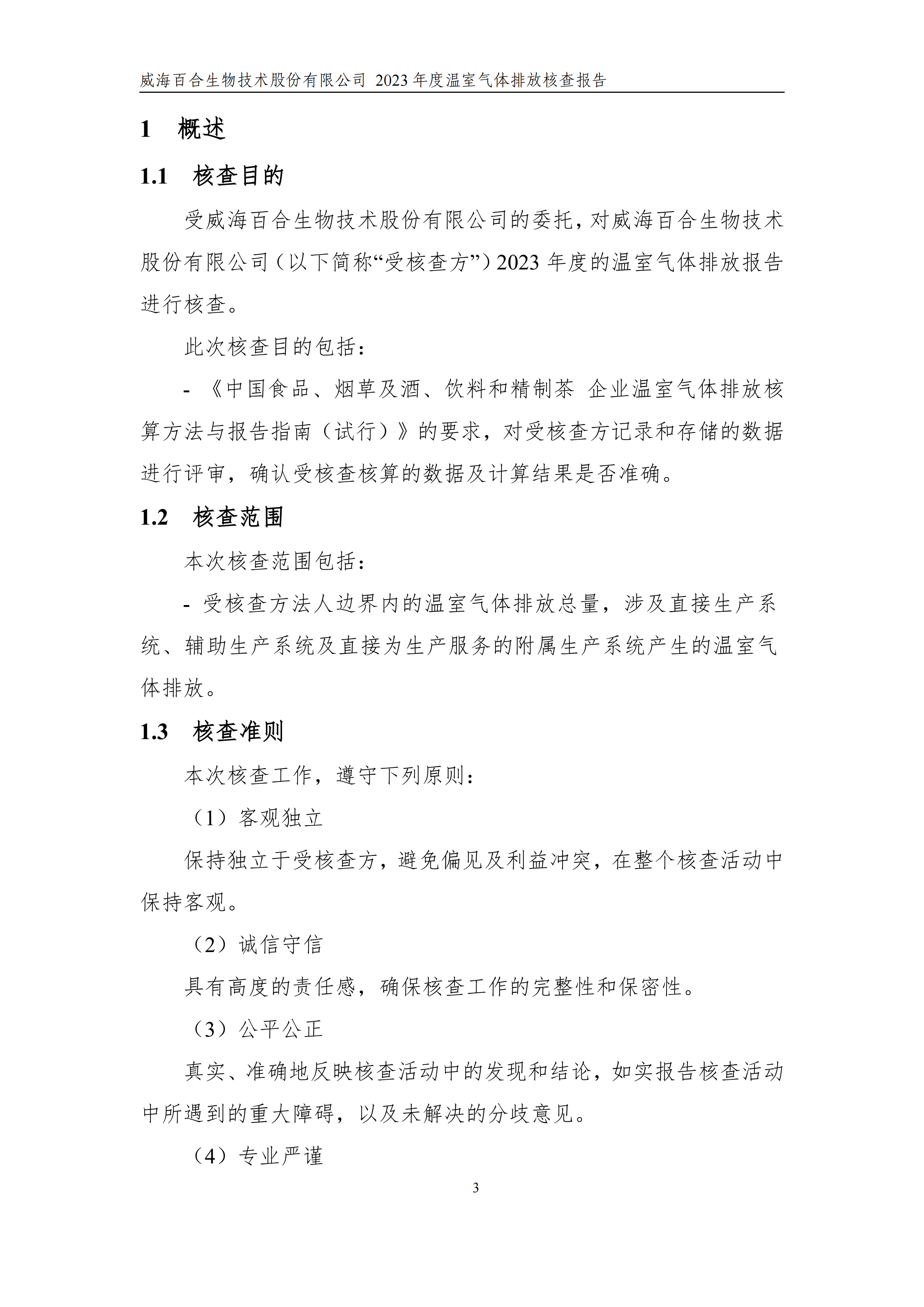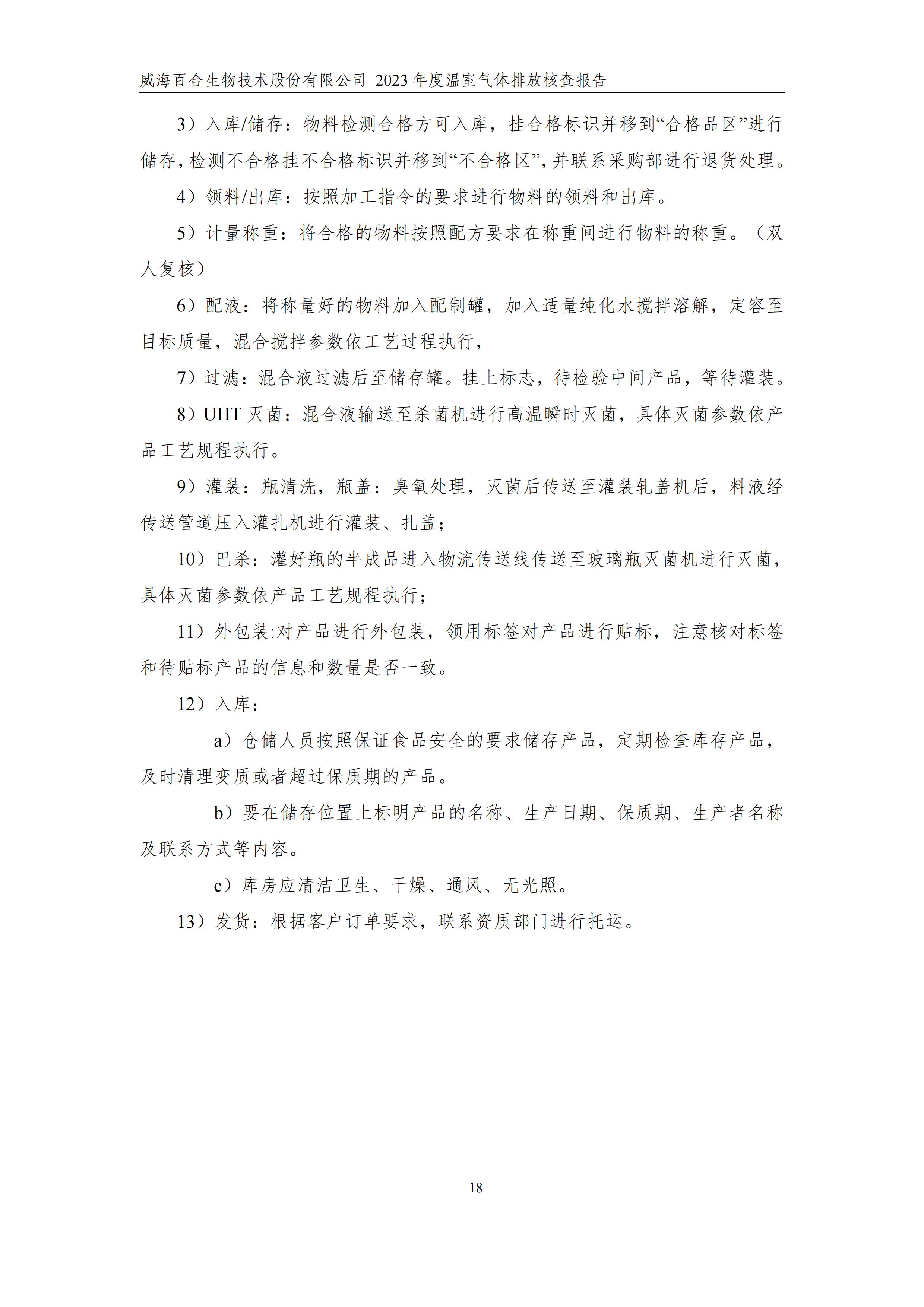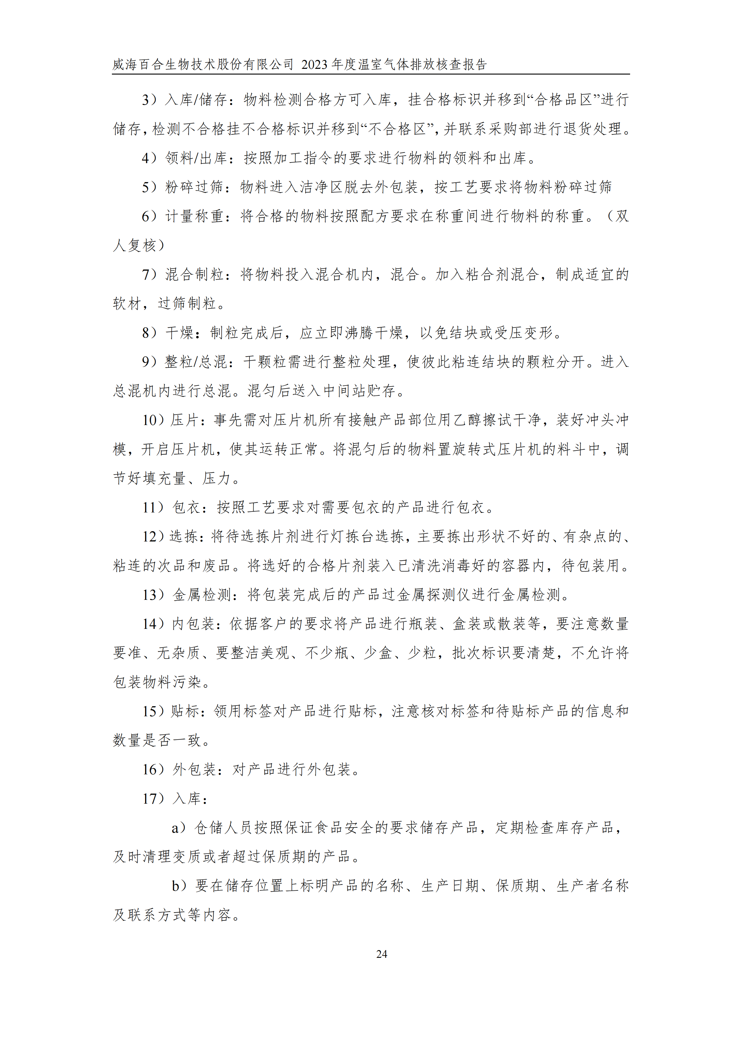 威海百合生物技術(shù)股份有限公司2023年度溫室氣體排放核查報(bào)告