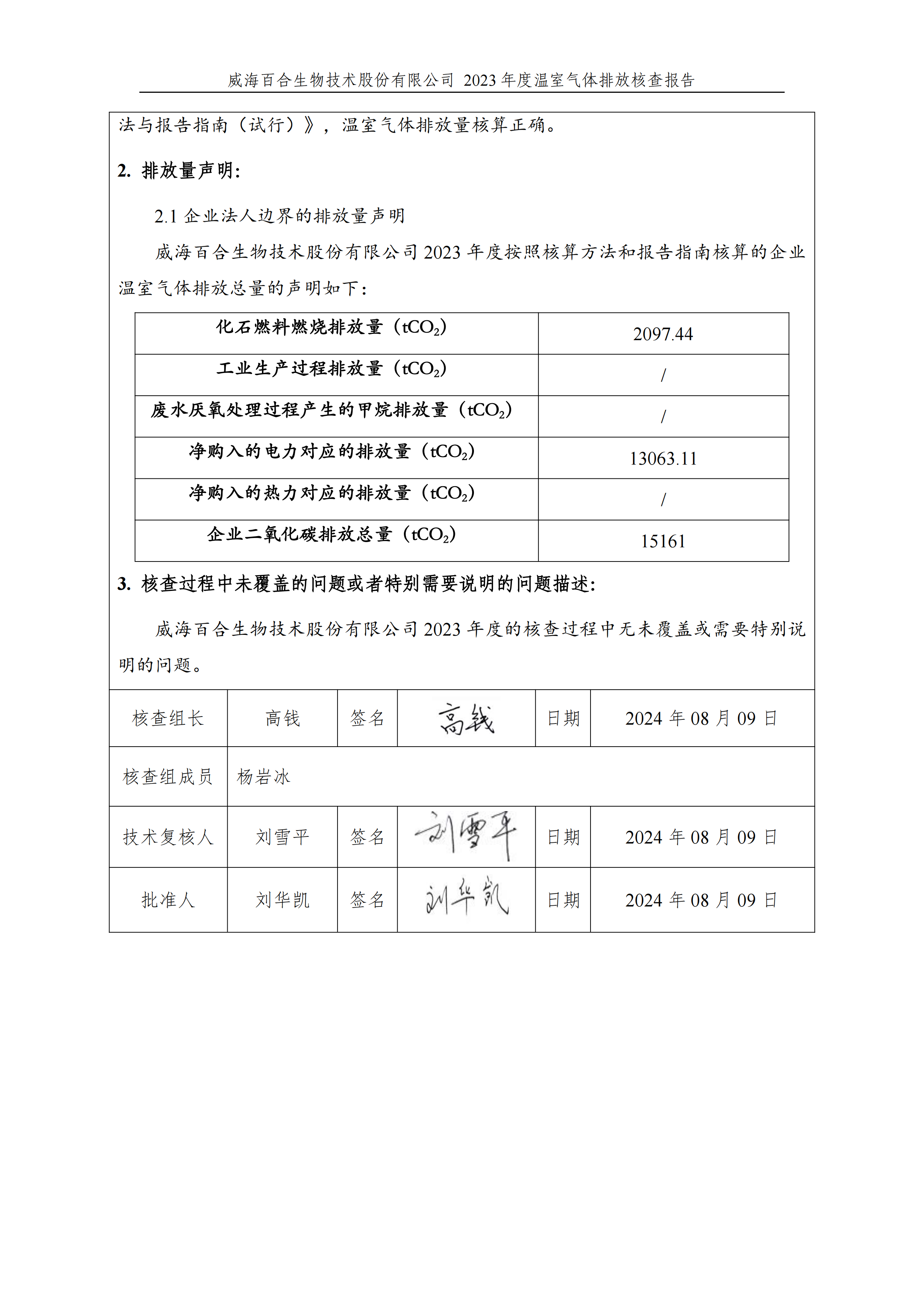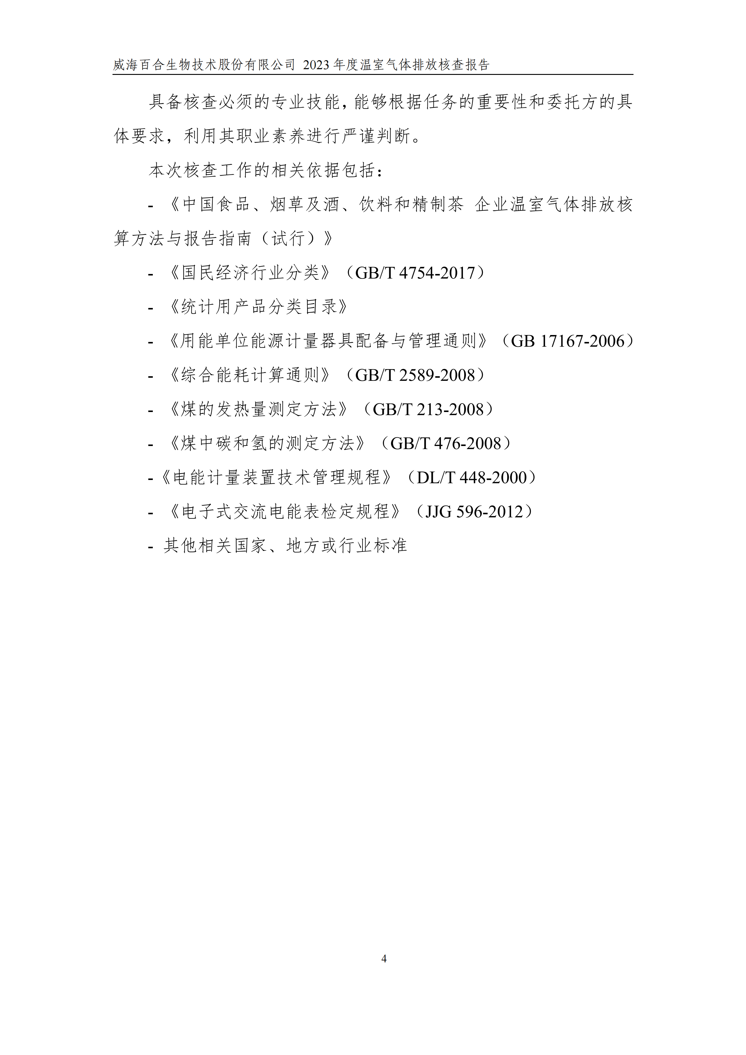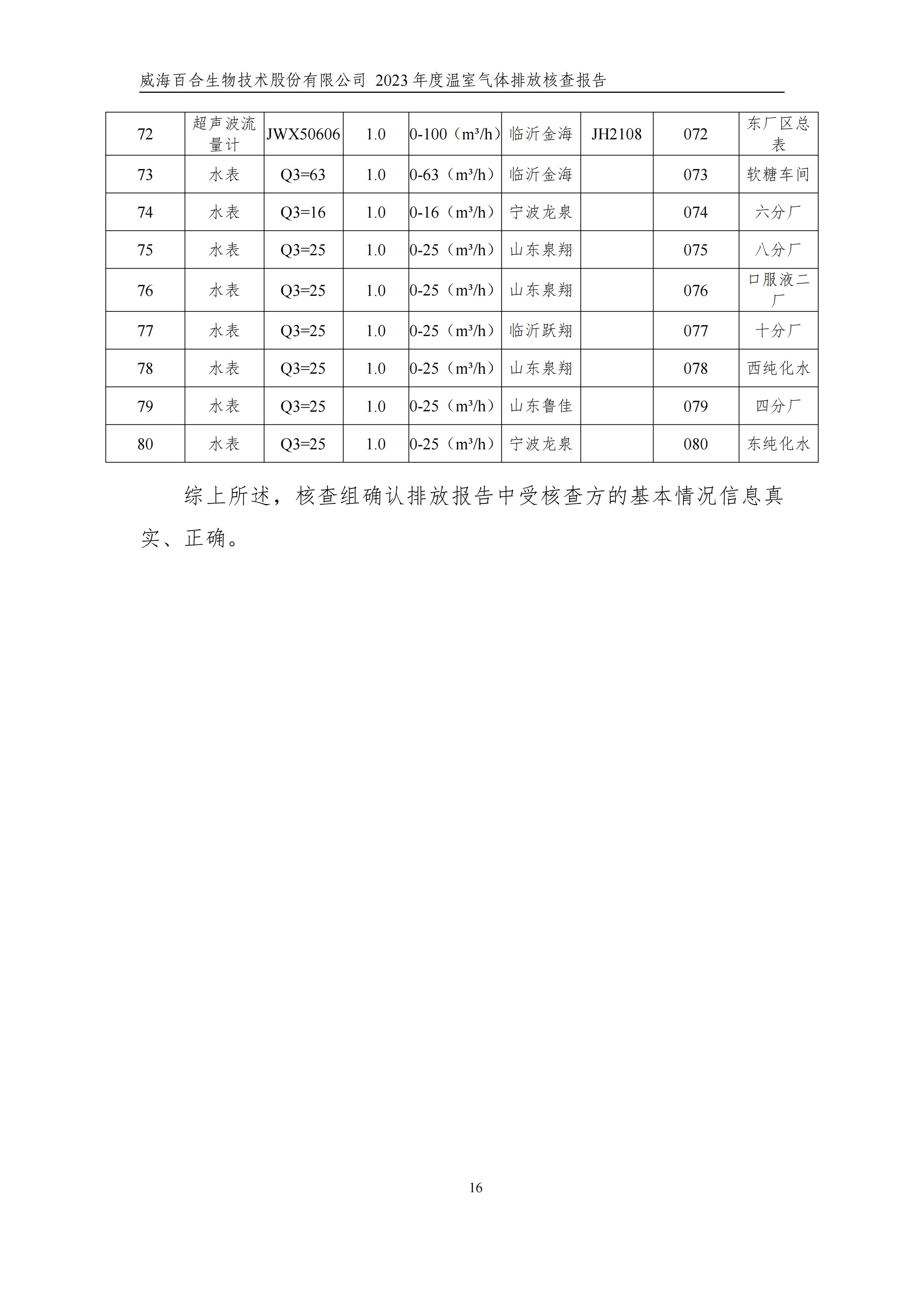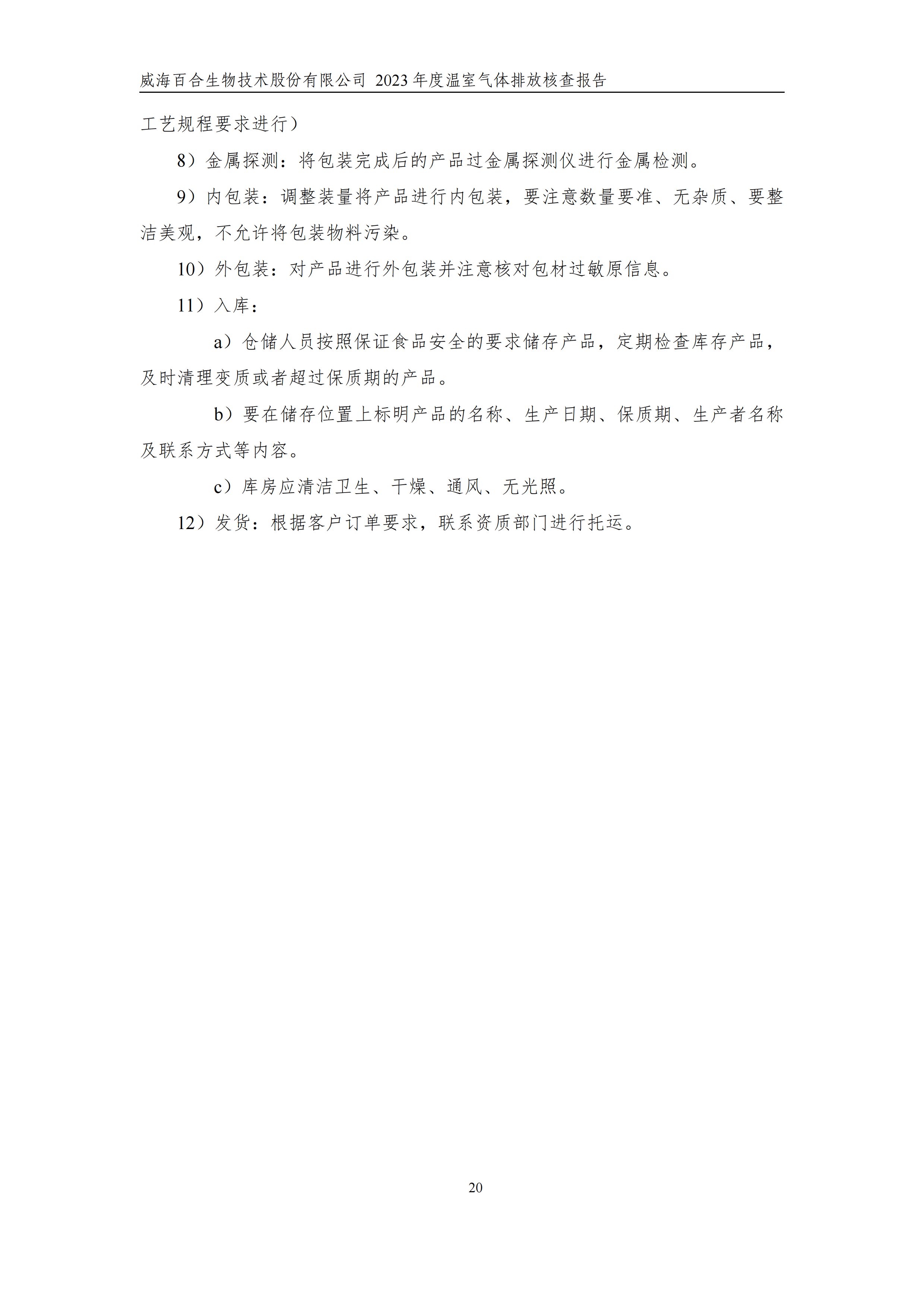 威海百合生物技術(shù)股份有限公司2023年度溫室氣體排放核查報(bào)告
