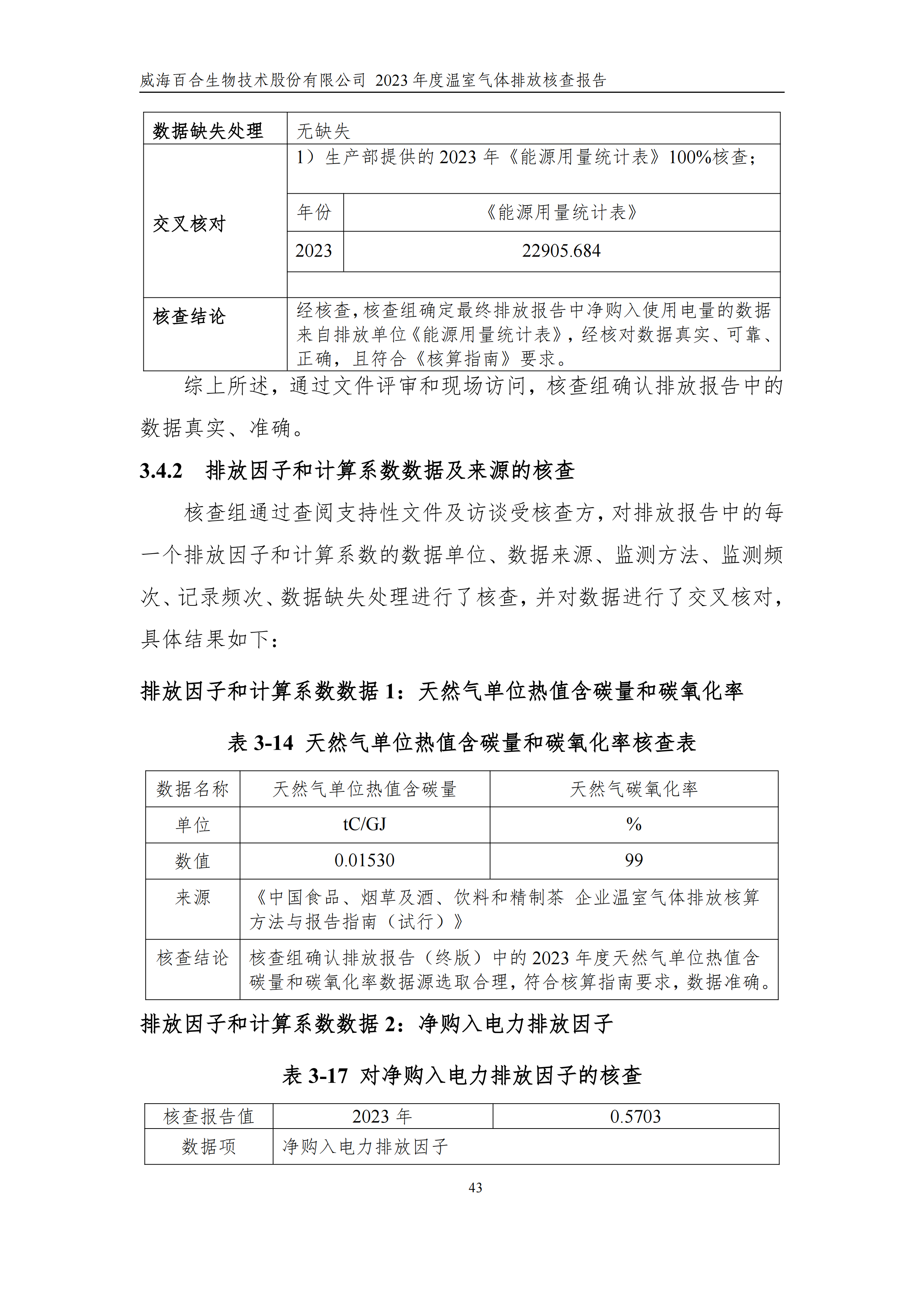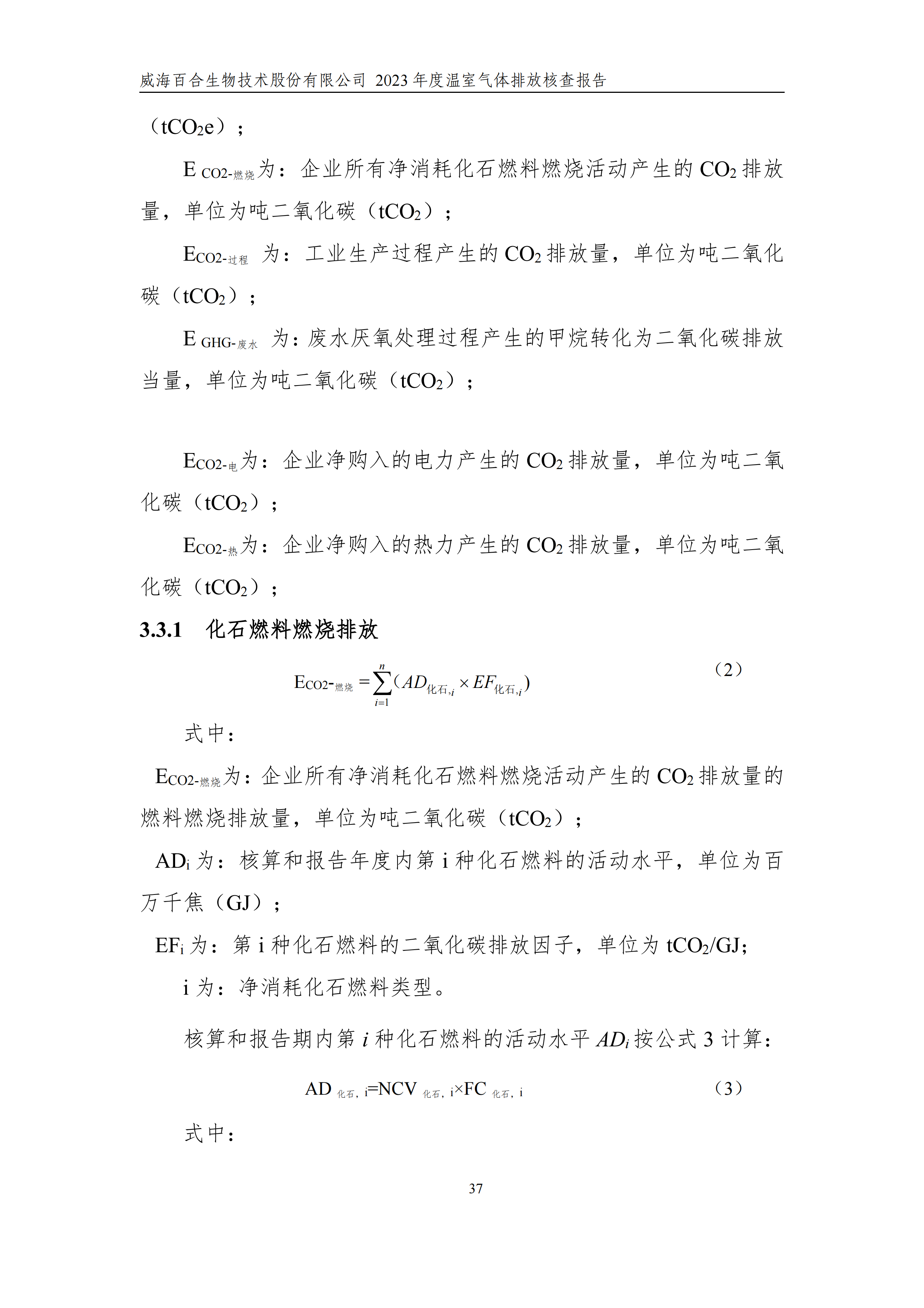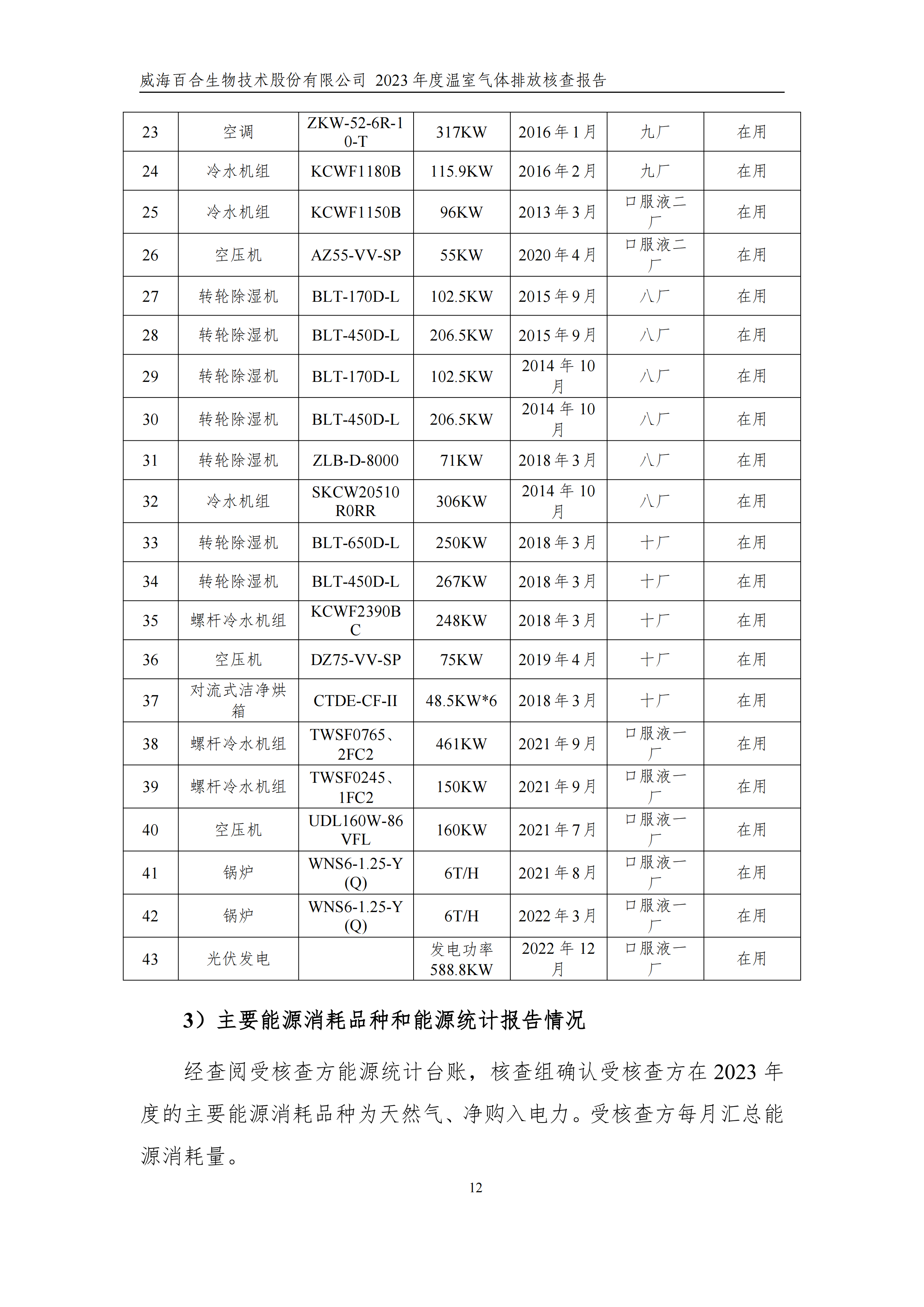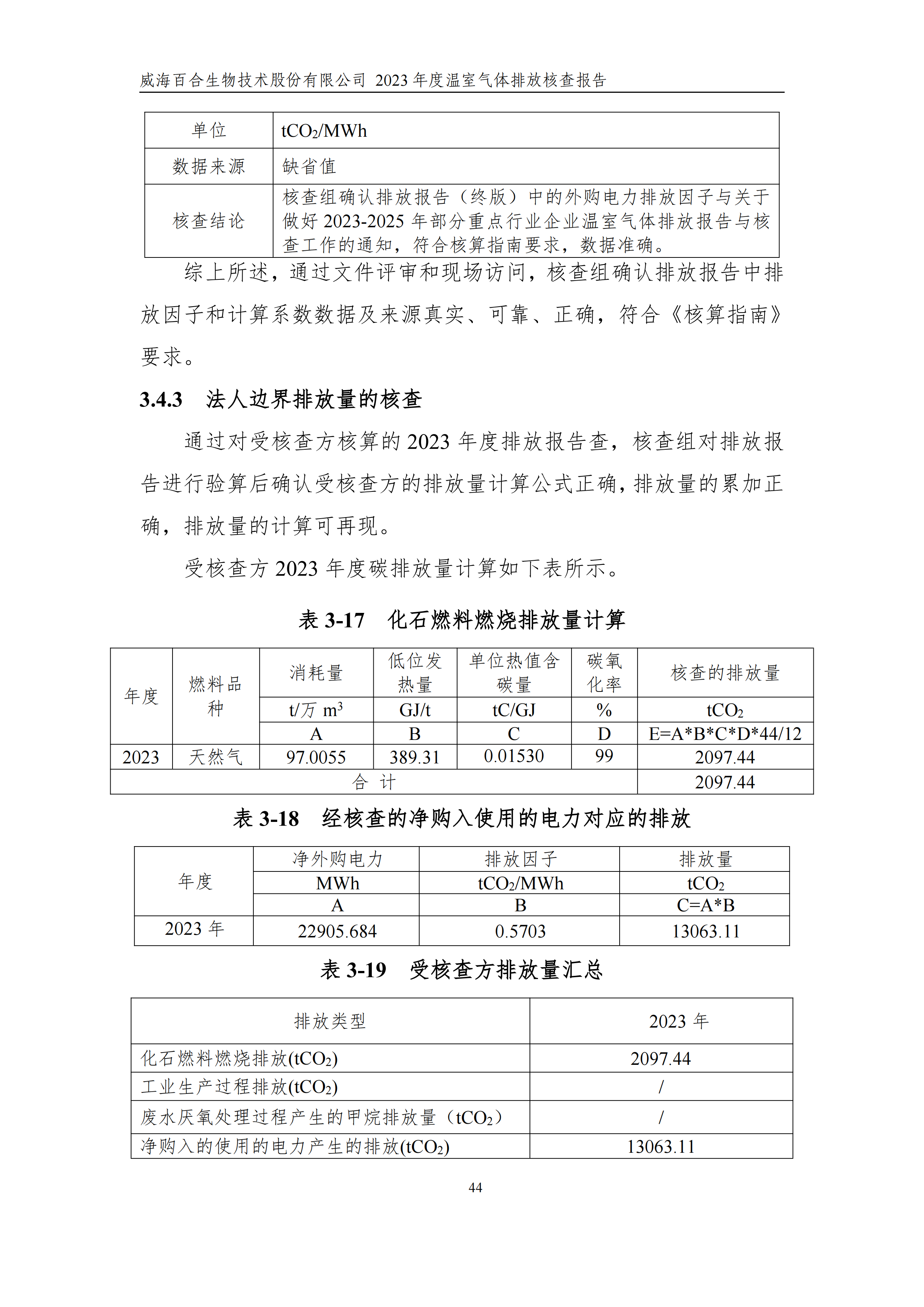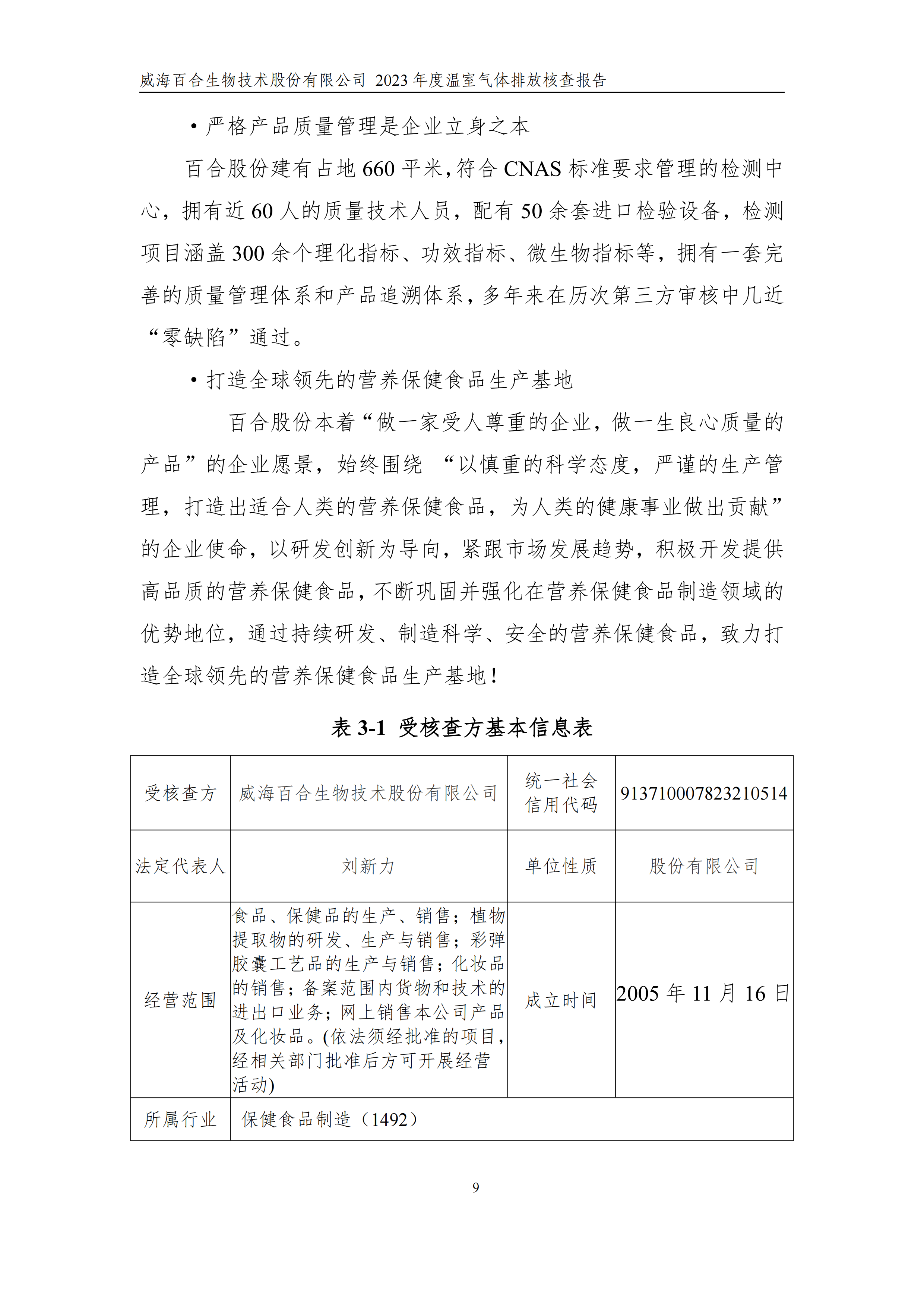 威海百合生物技術(shù)股份有限公司2023年度溫室氣體排放核查報(bào)告