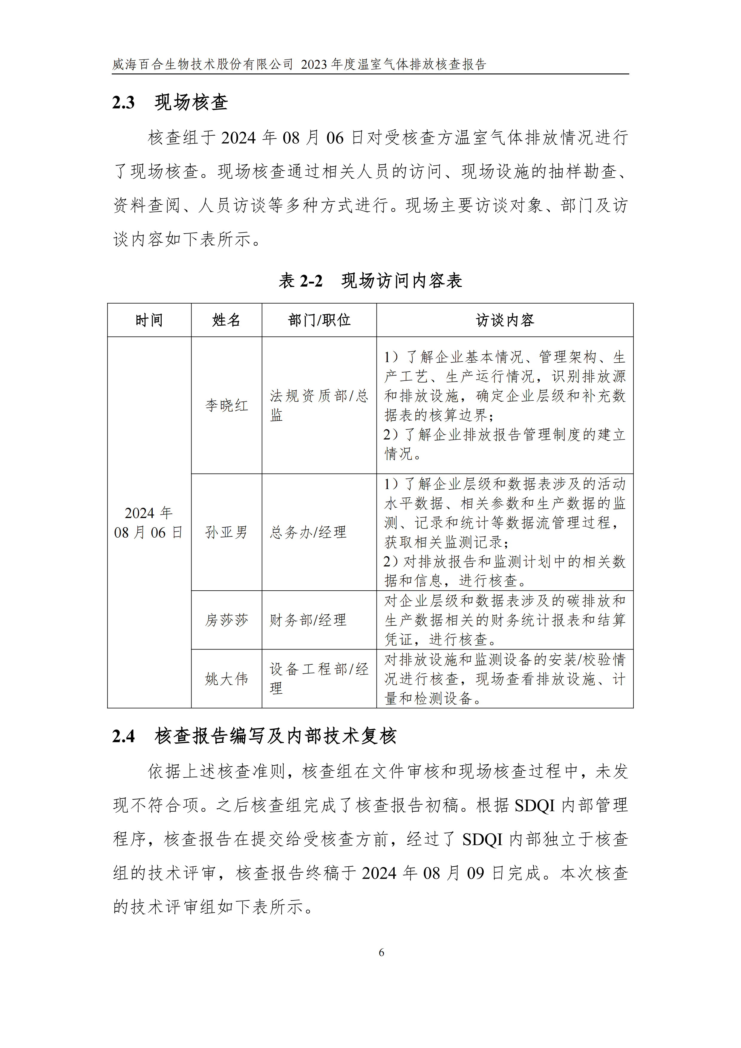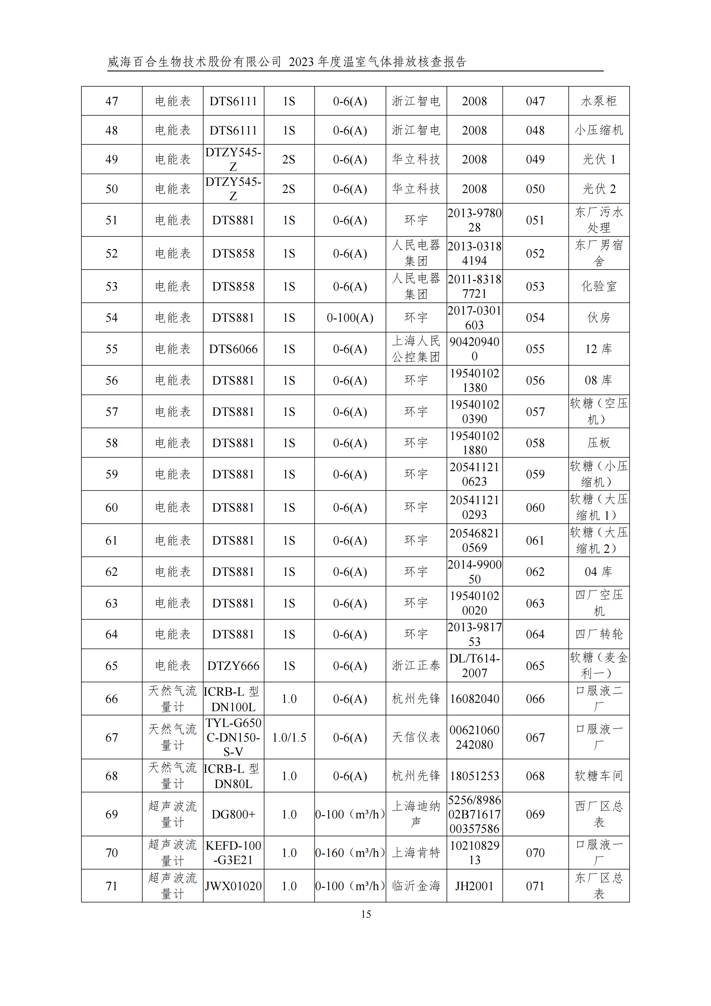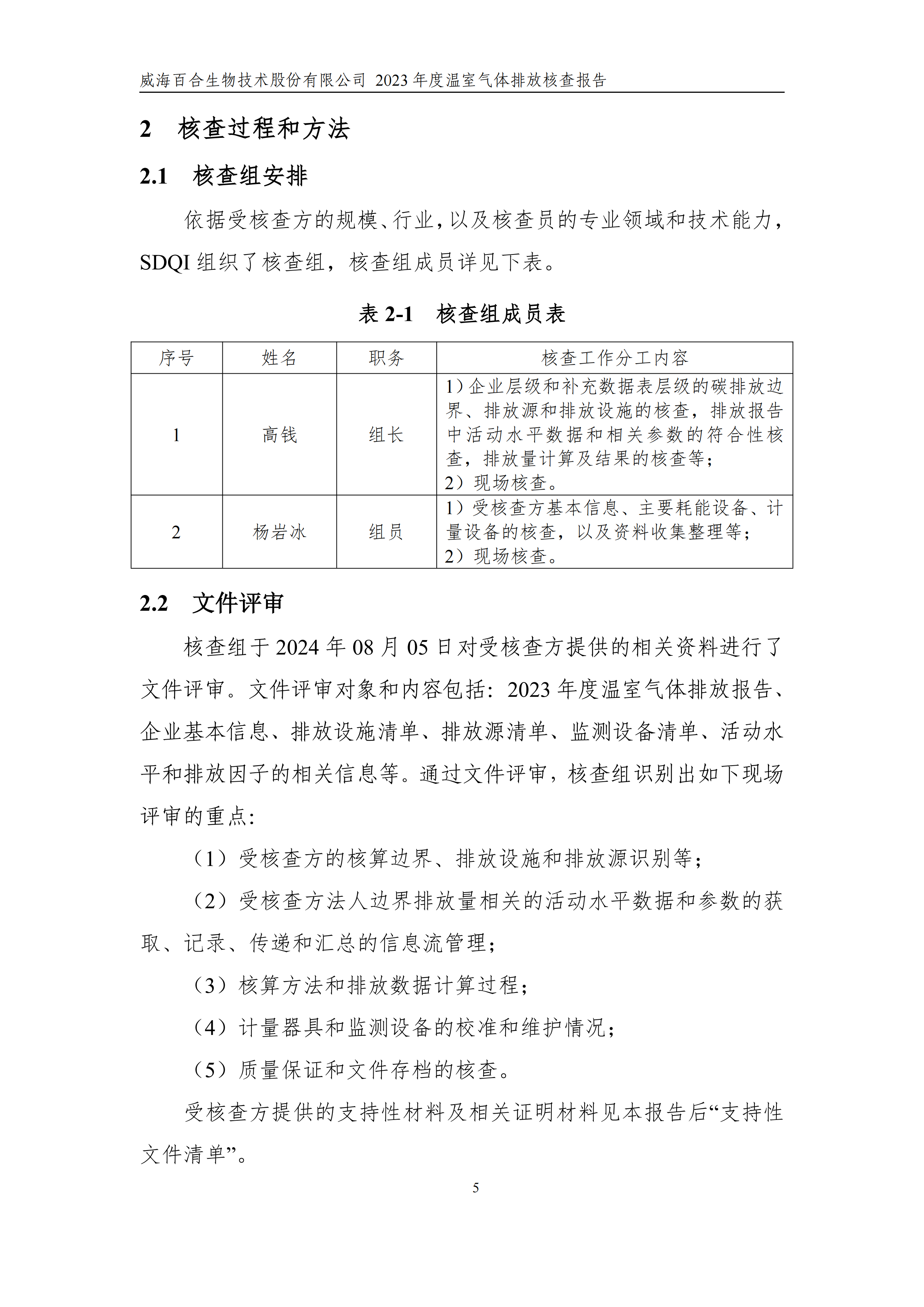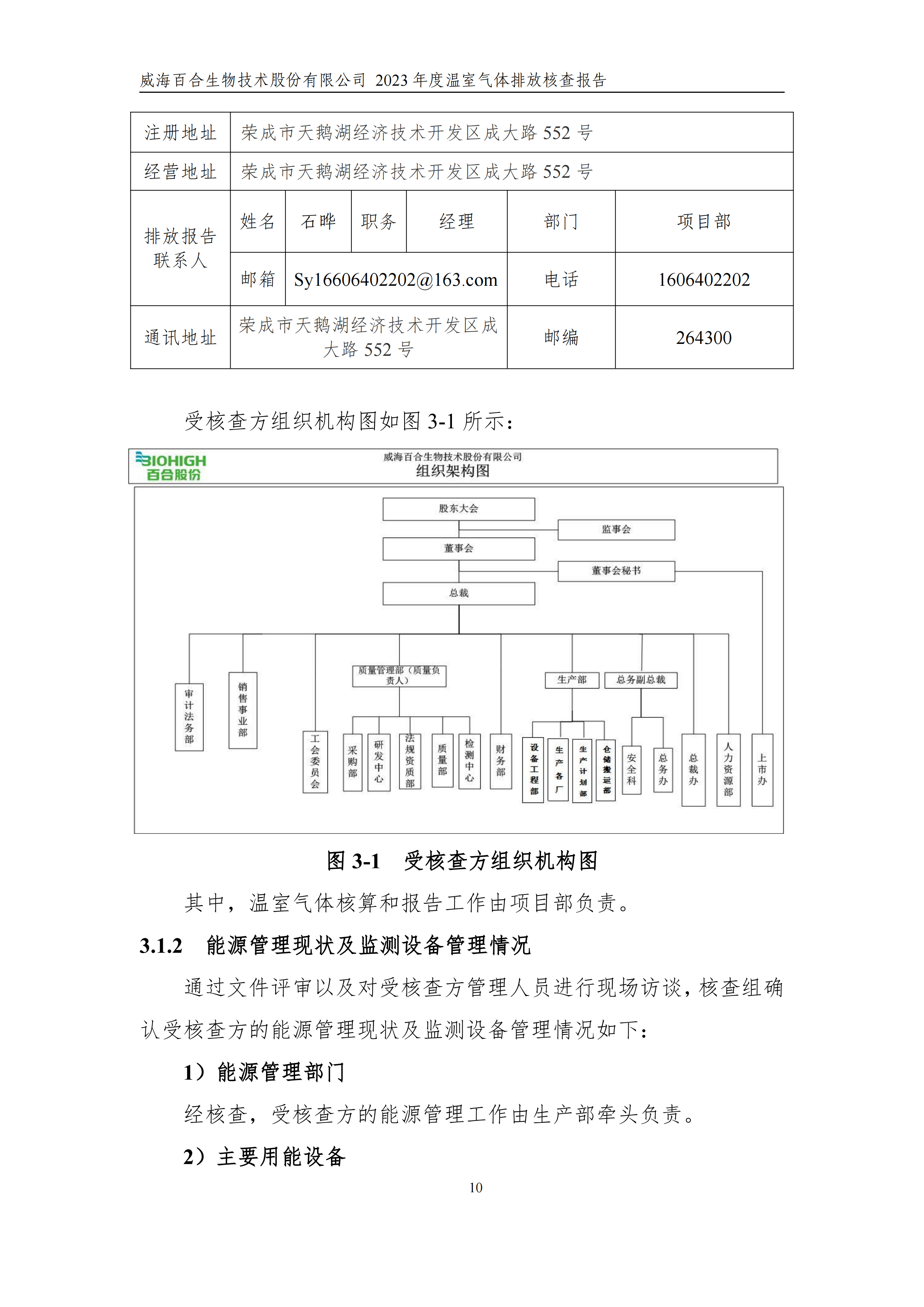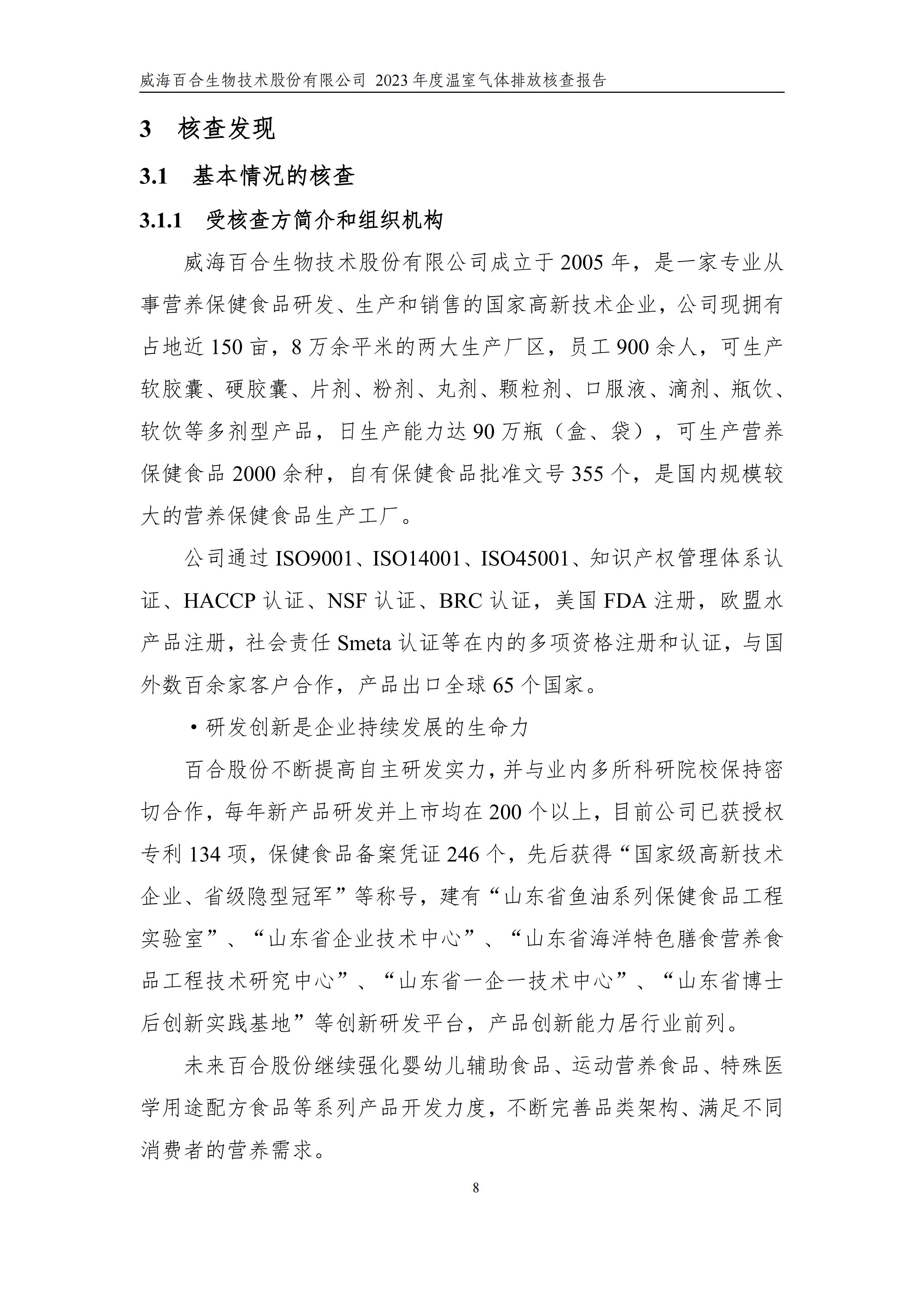 威海百合生物技術(shù)股份有限公司2023年度溫室氣體排放核查報(bào)告